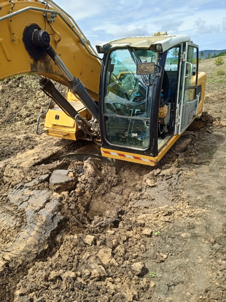 Our Excavator putting up a fight to birth a waterpan for a client.