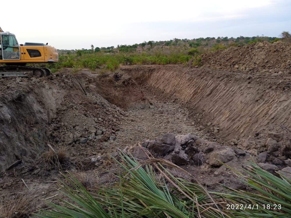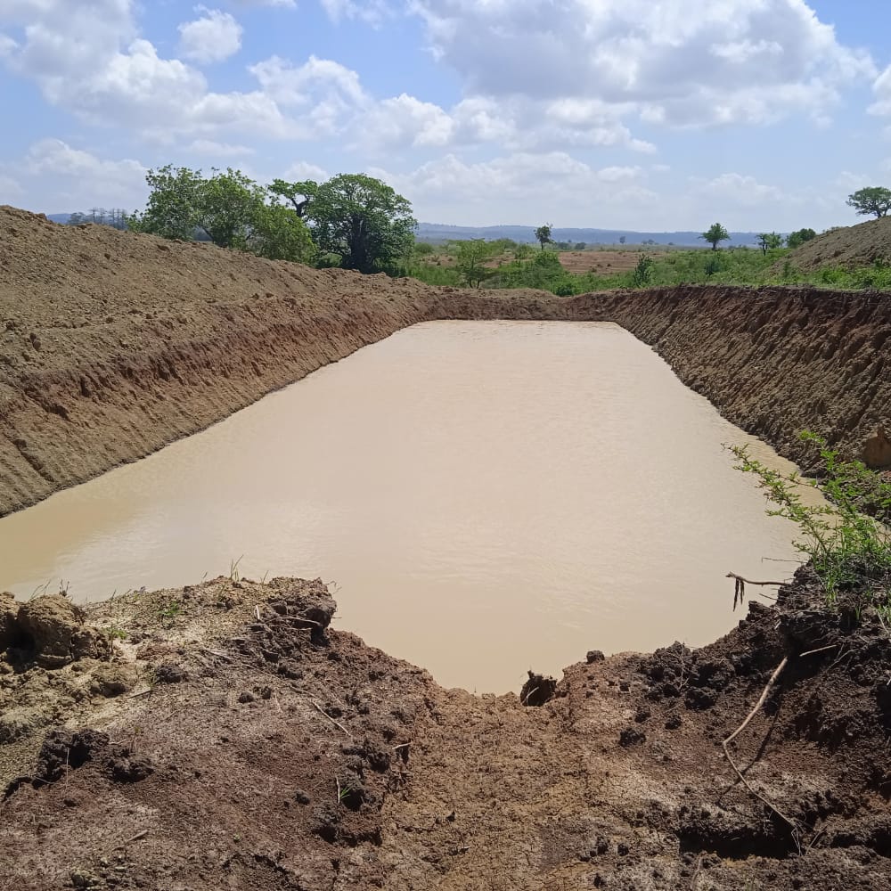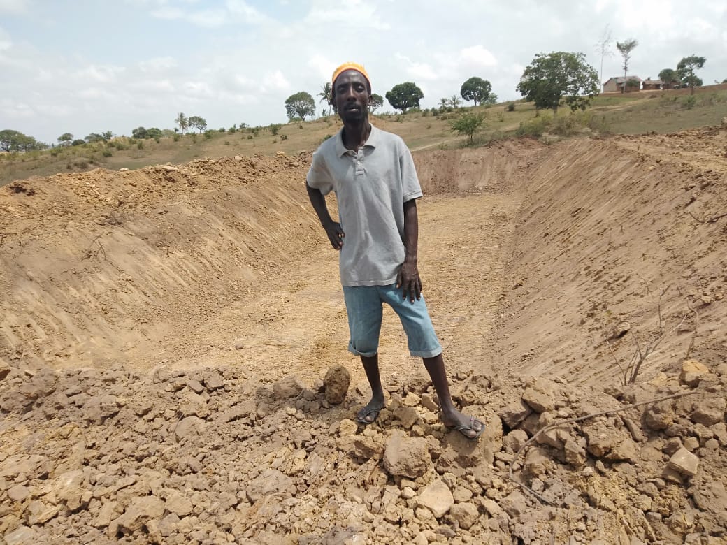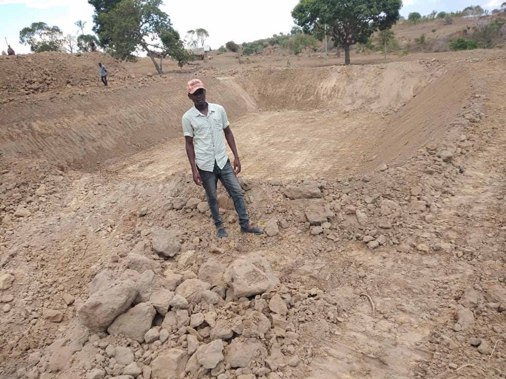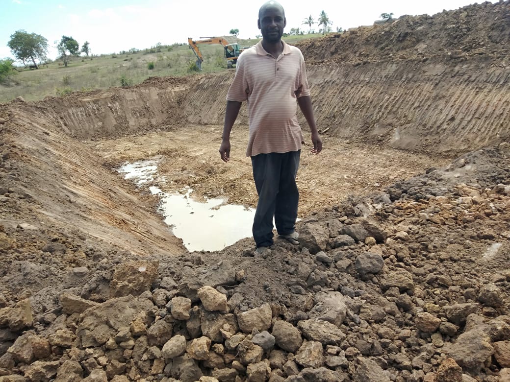 Ongoing construction of a waterpan to be used by wildlife in Voi