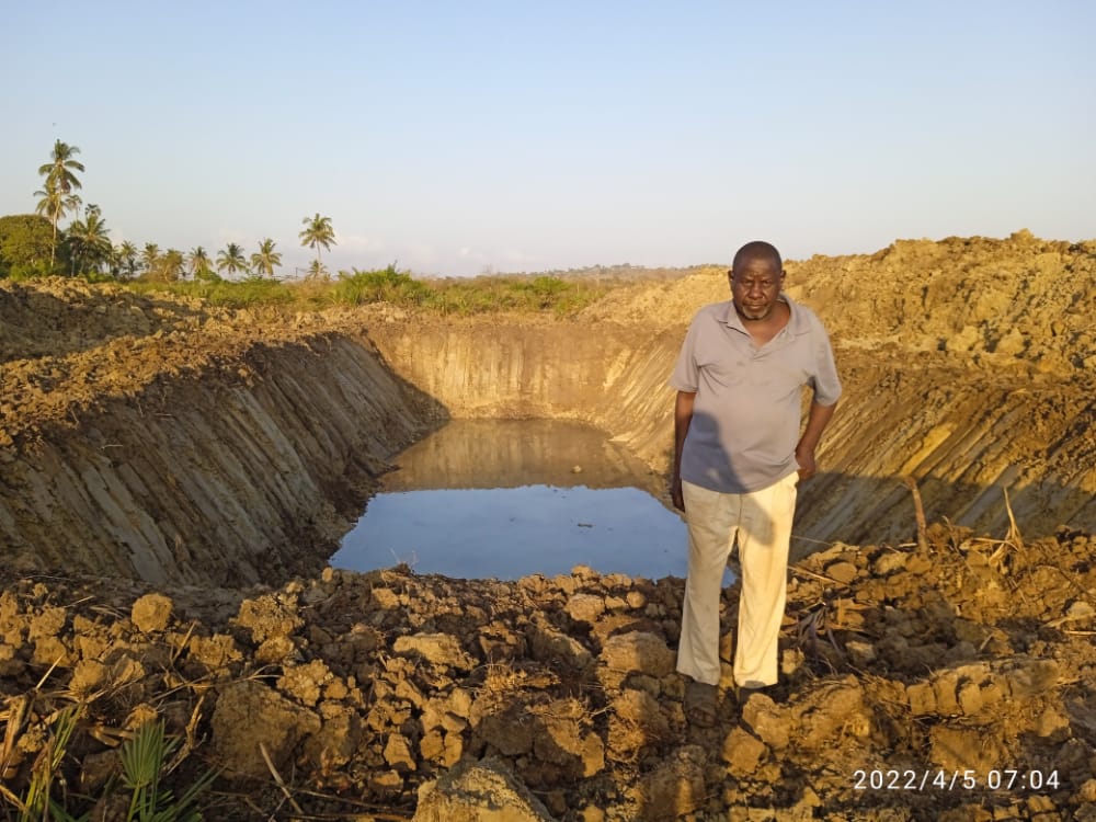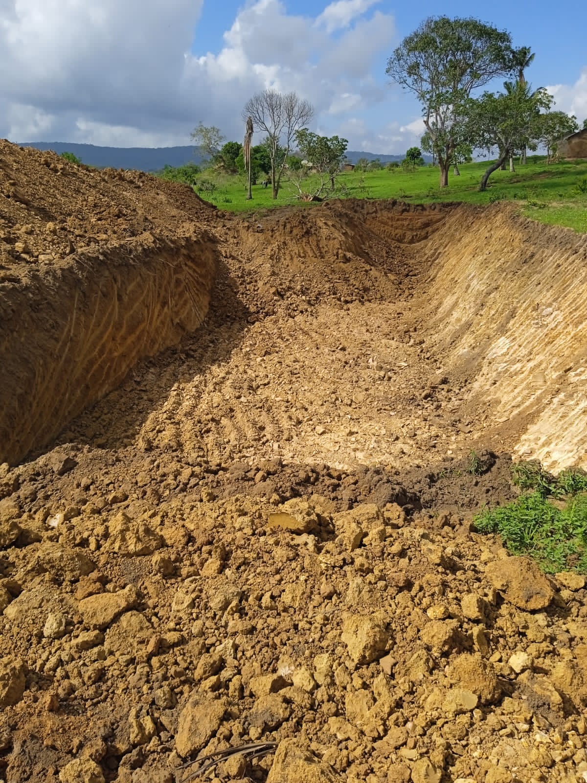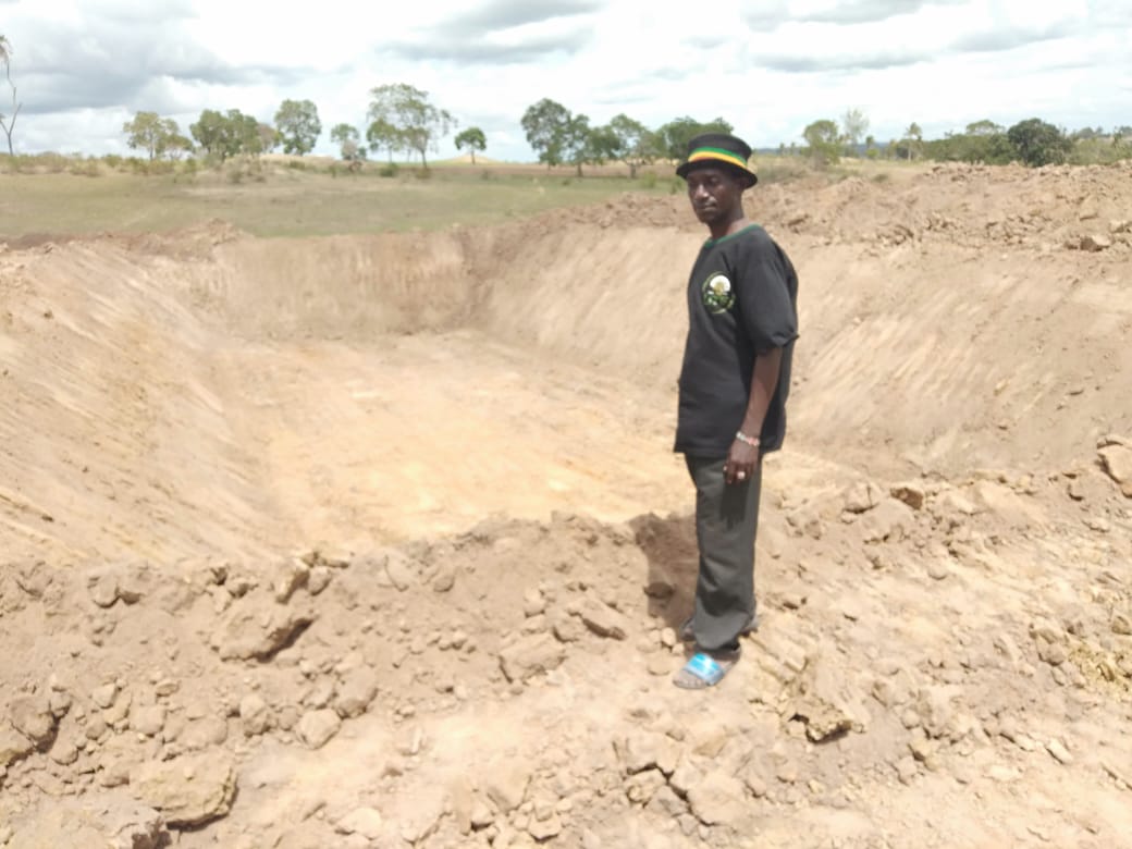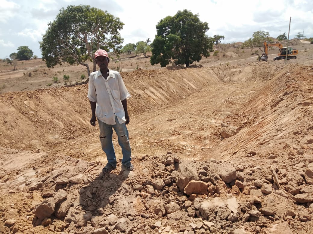 Ongoing construction of a waterpan to be used by wildlife in Voi