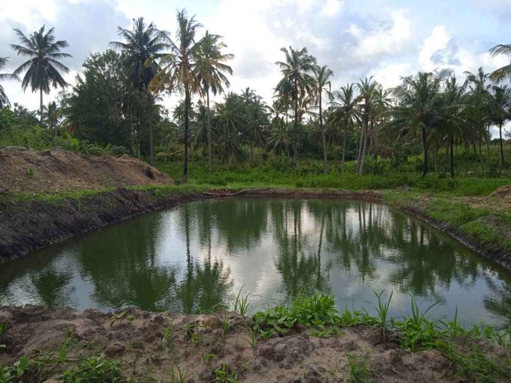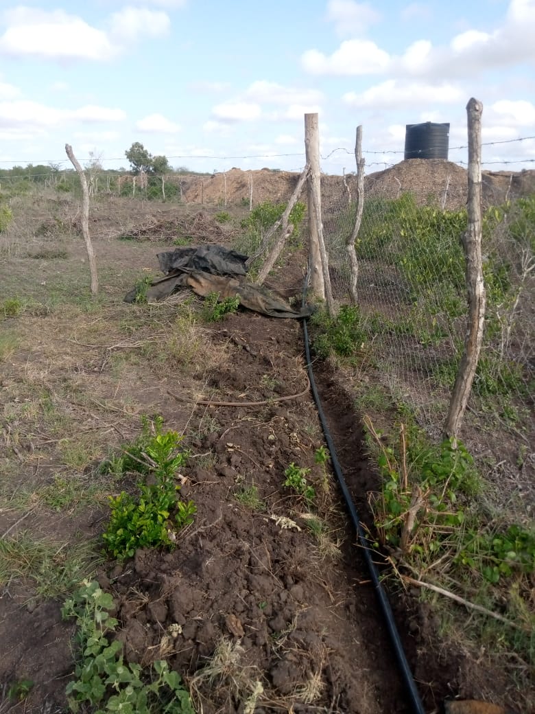 Water piped to the farm for irrigation from a clients waterpan